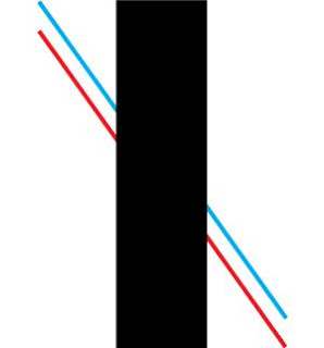 Here you can see that the blue line actually leads into the red line. Sure, the color contributes to the illusion, but it can be confusing even if the lines are all black.